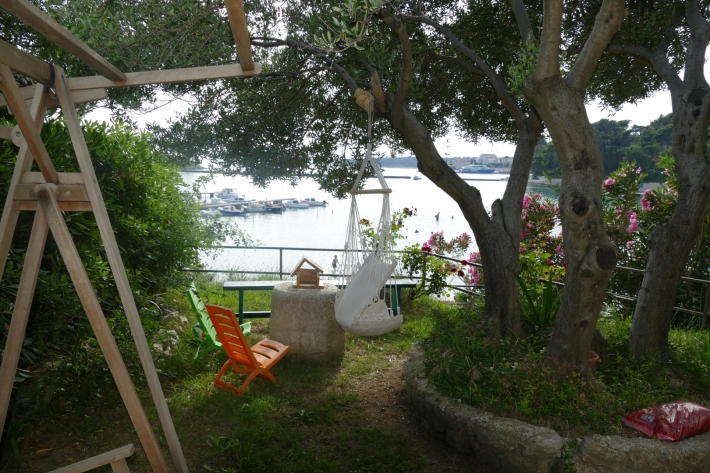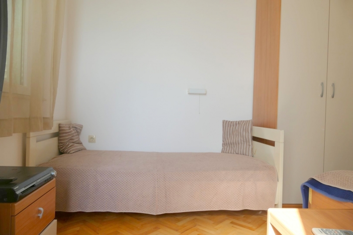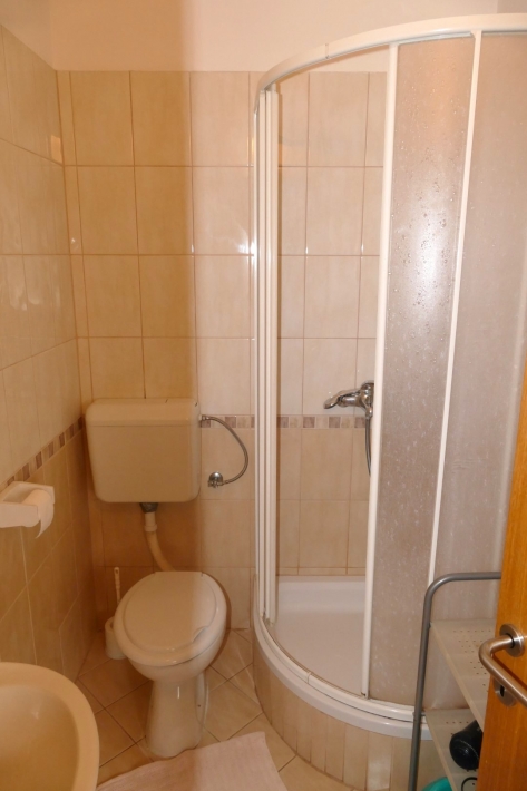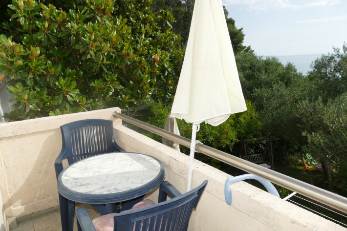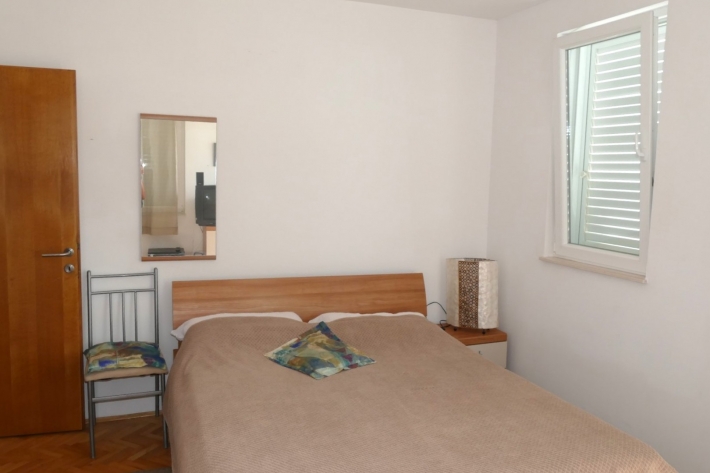 Description German: Nur wenige Minuten zu Fuß sind es von diesem Anwesen in Banjol bis zur beliebten Badebucht Padova II. Für 2-3 Personen bietet die 30 m² große Wohnung in der ersten Etage des Hauses Platz. Neben Esszimmer mit Küche stehen Schlafzimmer (Doppelbett + Zustellbett) und ein Badezimmer mit Dusche zur Verfügung. Der möblierte Balkon im Außenbereich lädt zum Verweilen ein und bietet einen schönen Blick über die Bucht. Das Apartment verfügt über WLAN-Internet, Sat-Tv und Klimaanlage. Grillen ist auf dem Grundstück gestattet, jedoch müssten Sie einen eigenen Grill mitbringen. Restaurant und Supermarkt erreichen Sie binnen weniger Gehminuten.