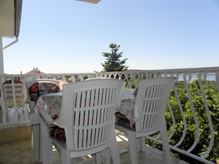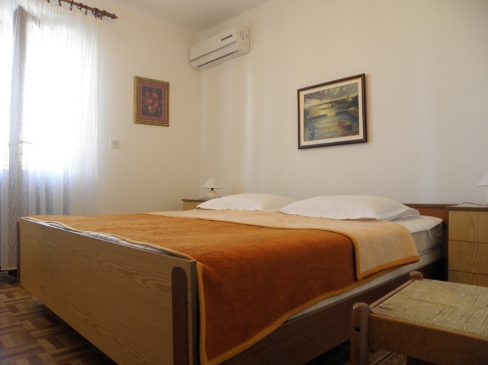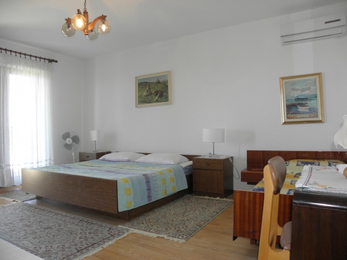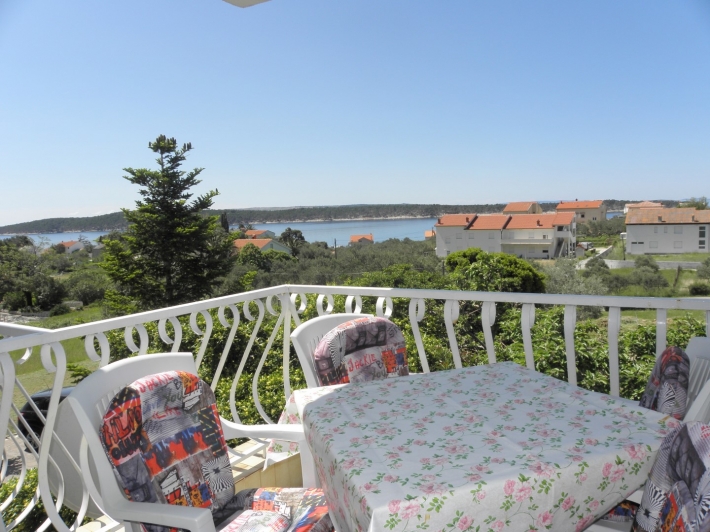 Description German: Genießen Sie einen herrlichen Blick auf das Meer. Dieses Anwesen liegt oberhalb der Hauptstraße in Banjol, unweit der schönen Altstadt von Rab. Die 75 m² große Wohnung befindet sich im 1. Obergeschoss des Hauses und bietet Ihnen eine Küche mit Wohn/Essbereich, zwei Schlafzimmer so wie zwei Badezimmer. Im Außenbereich lädt der rund 15 m² große Balkon mit Meerblick zum gemeinsamen Frühstück oder Essen ein. Die Unterkunft ist mit WLAN-Internet, Sat-TV, Klimaanlage ausgestattet.