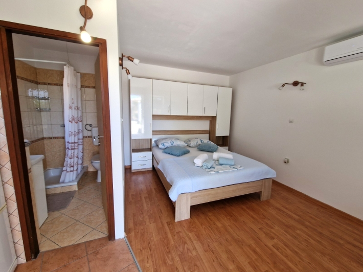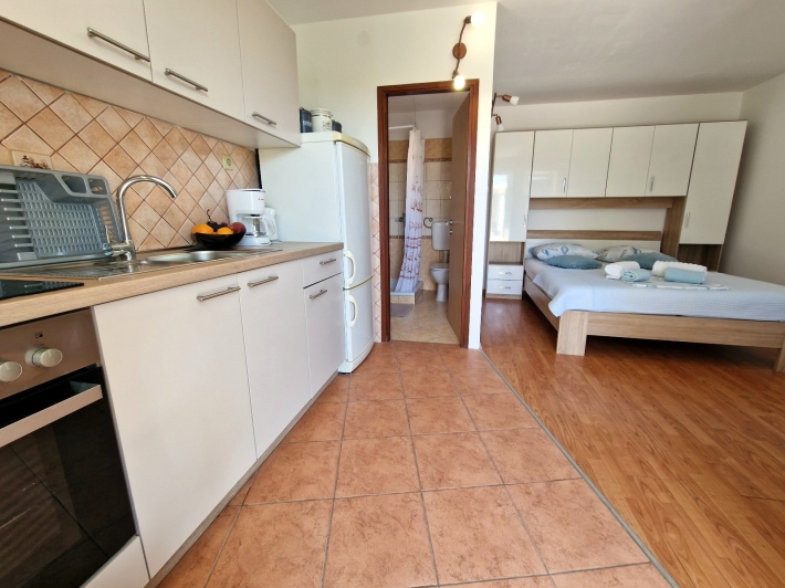 Description German: Das ist ein Studioapartment (Wohn-, Schlaf- und Esszimmer sind ein Raum) im Ferienort Barbat in der Nähe der