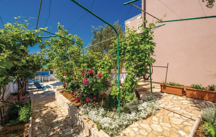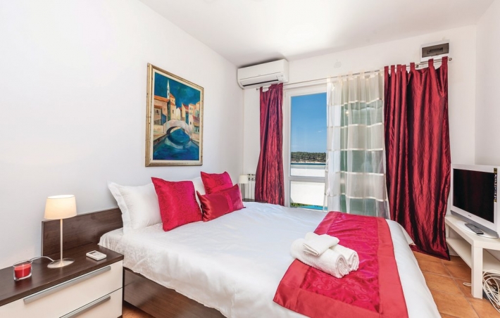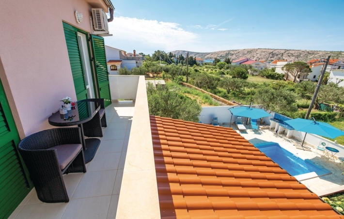 Description German: Diese luxuriös und mit viel Liebe zum Detail eingerichtete Villa mit Swimmingpool befindet sich in Barbat auf der Insel Rab. 155 m² Wohnraum über 2 Etagen, ausgestattet mit zahlreichen Extras bietet Ihnen das schicke Urlaubsdomizil: Erdgeschoss Im Erdgeschoss sind Küche mit Essraum und Wohnzimmer mit eine überdachte Terasse (20qm). 1. Etage: Im ersten Obergeschoss befinden sich 3 Schlafzimmer jede mit Badezimmer und Balkon mit Meerblick.